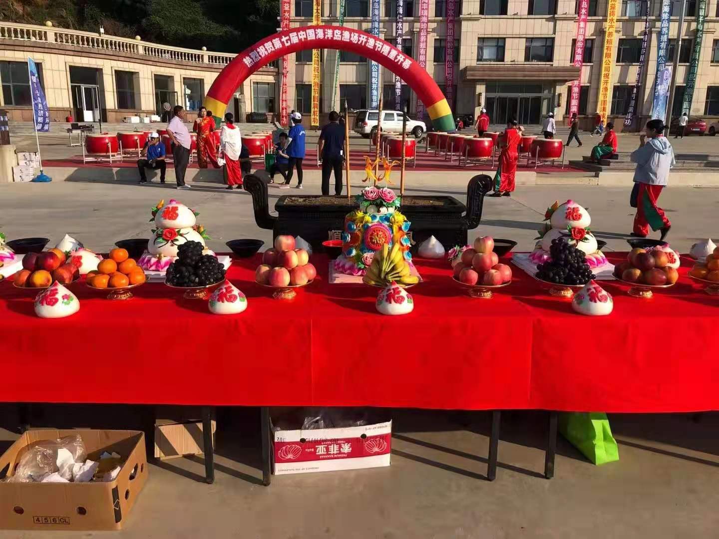 上午,长海县海洋岛镇大连海洋岛水产集团所属的大滩港区彩旗飘扬、锣鼓齐鸣、礼花满天,几百名渔民及家属面朝大海举行了民间祭海仪式,用真诚感恩海洋,祈盼着平安和丰收。在雄风锣鼓、秧歌、等民俗表演后,随着首船鸣笛为号,大批渔船飘扬着开渔节的彩旗,乘风驶出海洋岛港奔赴渔场作业。沉寂了四个月的渔港再次沸腾起来。